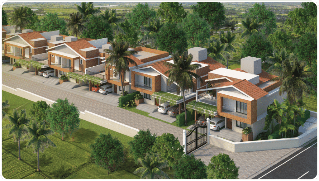 Kurtarkar’s Nisarg Dham is a peaceful residential enclave nestled in the lush greenery of Shanti Nagar, Ponda. Designed for nature lovers who also want the convenience of urban living, the project combines scenic beauty with modern architecture and practical design.